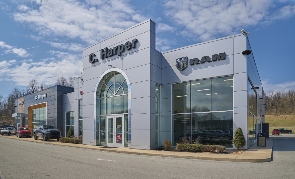 Fairchance Construction proudly completed the new C. Harper Dealership at 1500 Morrell Ave in Connellsville, PA. Constructed in 2020, this Chrysler, Dodge, Jeep, and Ram dealership was developed to expand the C. Harper Auto Group’s presence into the Connellsville market with a modern, full-service automotive facility.