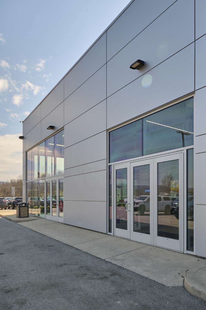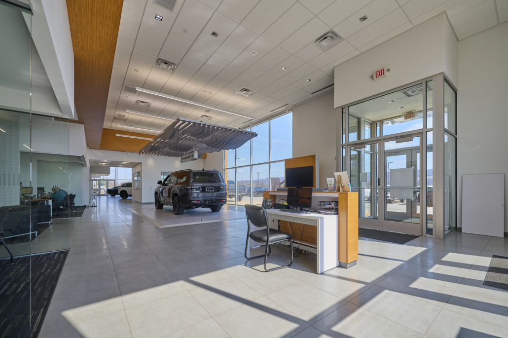 The service center was designed for long-term performance and ease of maintenance. It features sealed concrete floors, exposed ceilings, and painted interior steel columns, creating a durable and efficient workspace.