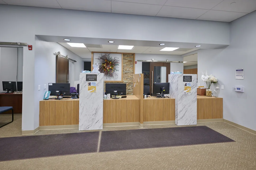 A bold blend of materials and color schemes creates dimension and texture, ensuring the building stands out. The architecture welcomes visitors with an inviting layout that feels both professional and approachable.